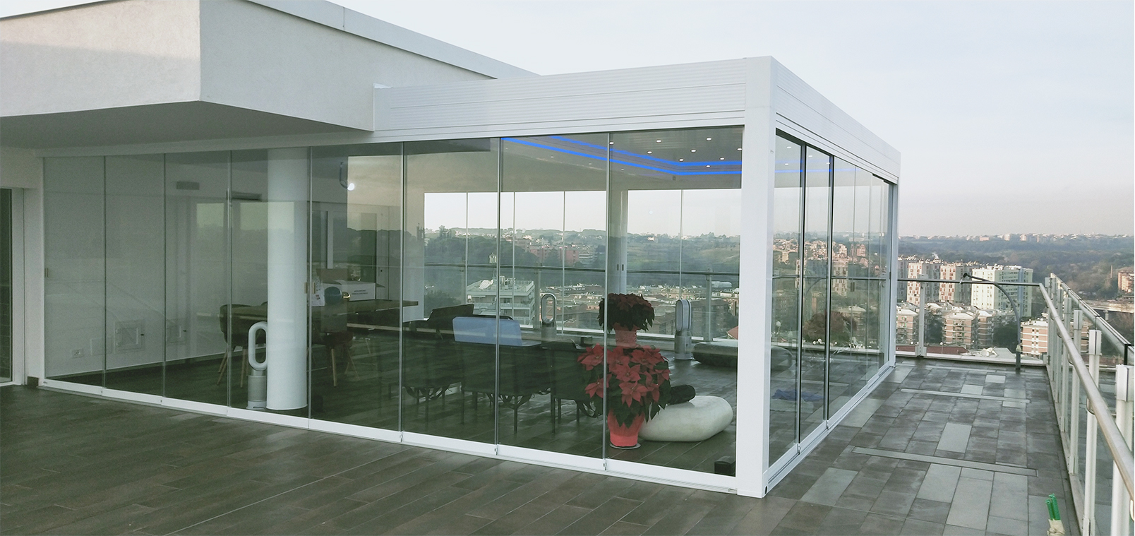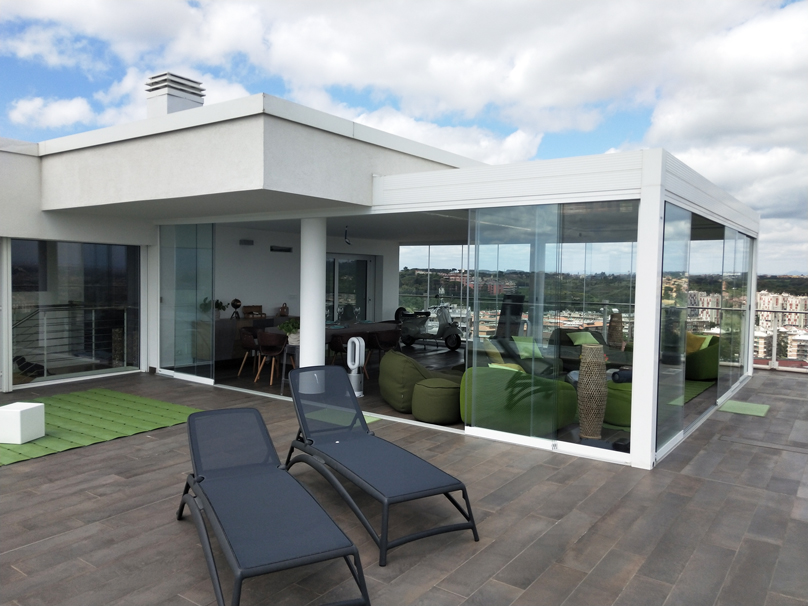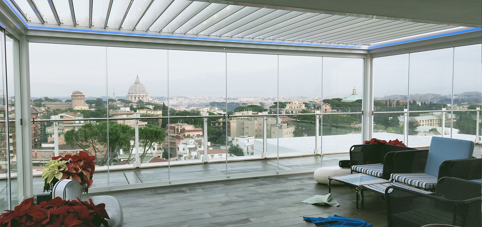 Pergotenda Bioclimatica con Vetrate Scorrevoli Gibus
